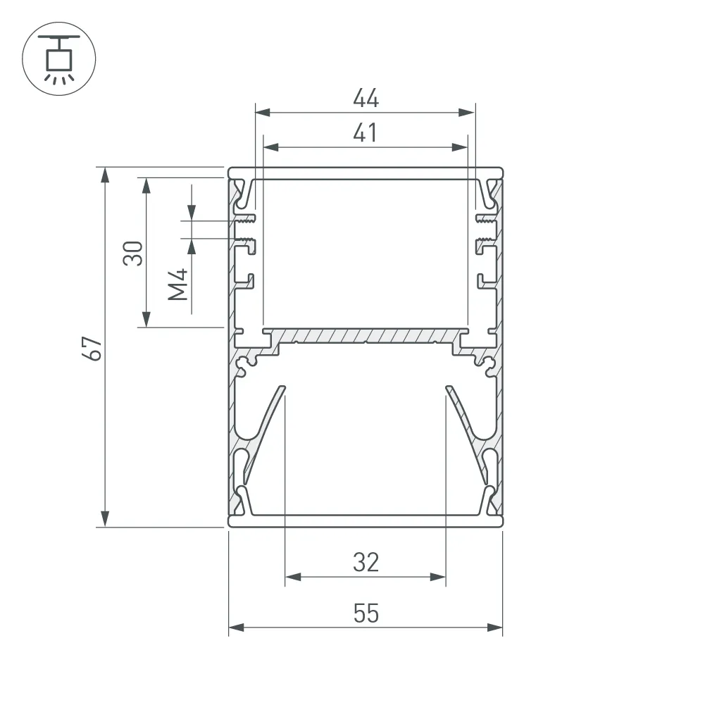 Профиль для подвесного монтажа с отсеком для блока питания. Поставляется в комплекте с 2-мя экранами - матовым и прозрачным призматическим.