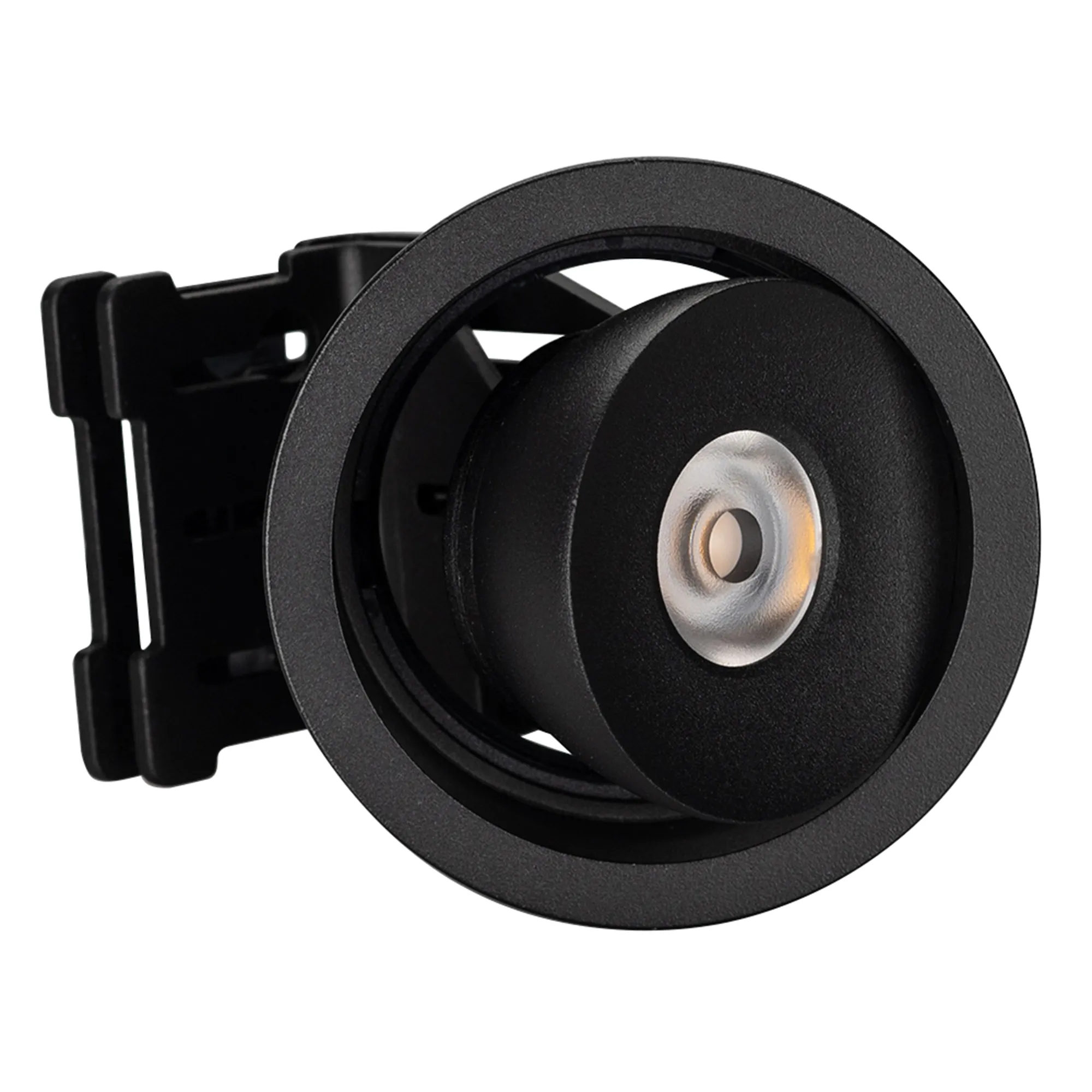 Встраиваемый поворотный светильник для потолка. Мощность 9W, цвет ДНЕВНОЙ 4000K, св.поток 630лм, угол 45°, RA>90. Корпус черный. Питание AC180-240V. Размеры DxH Ø78x90мм. Установка в отверстие Ø70мм. Драйвер в комплекте (30-45V, 220mA).