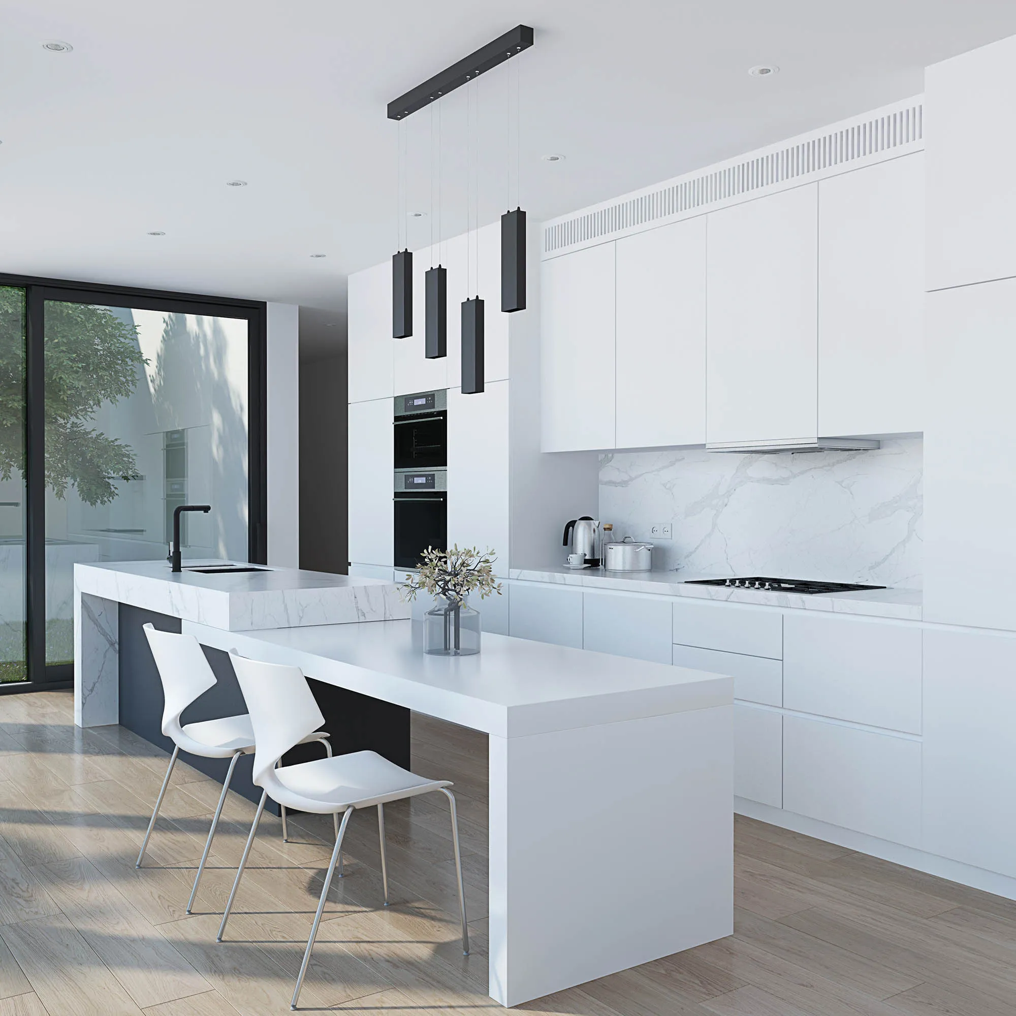 Подвесной светильник 4х6Вт, белый матовый корпус, материал алюминий. Цвет ТЕПЛЫЙ БЕЛЫЙ 3000K, св.поток 2100лм, CRI(Ra)>80, угол 34°. Размер 835x50x1200мм. Питание AC220-240, драйвер в комплекте (30-42V, 600mA), 24Вт.