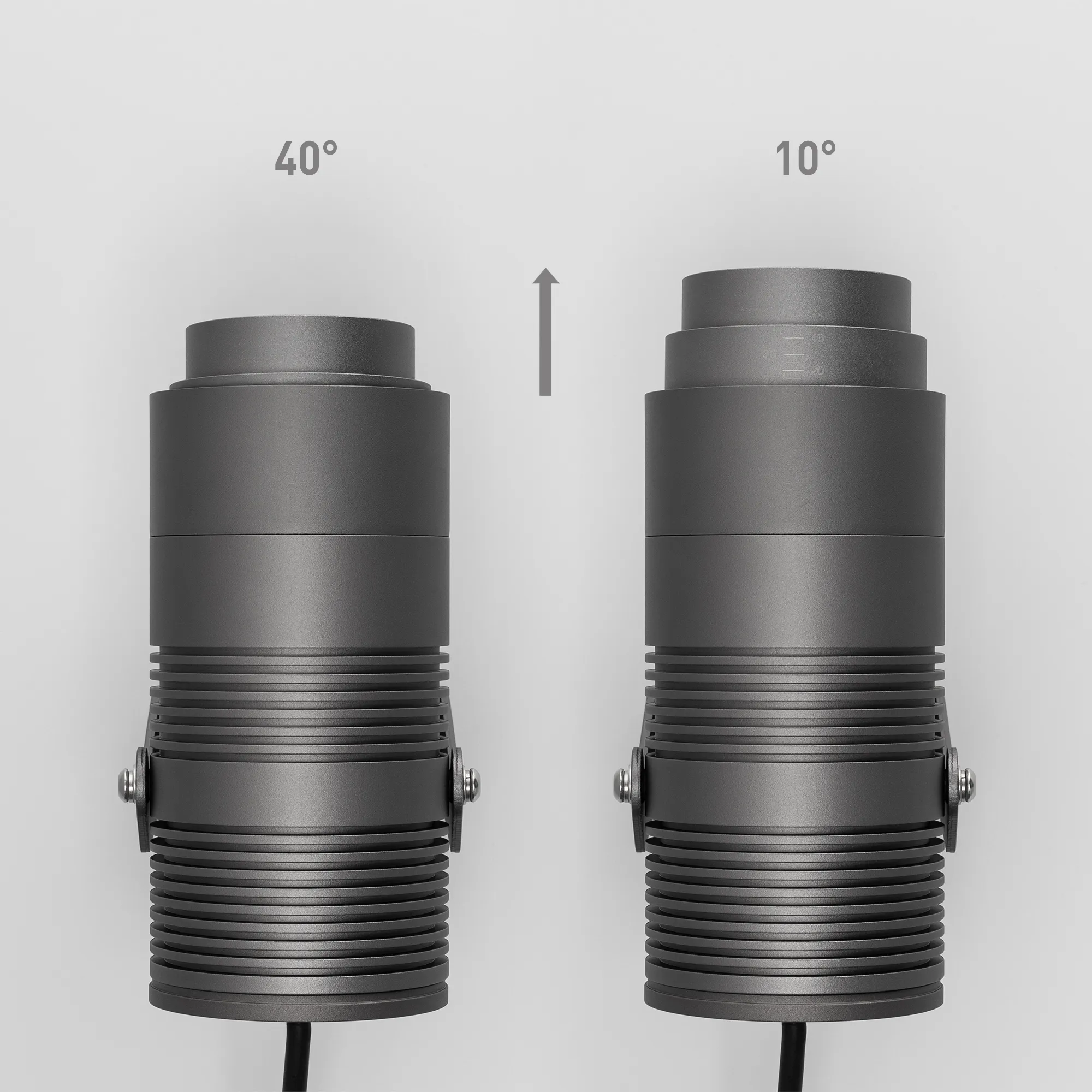Уличный светодиодный прожектор, мощность 25Вт, регулируемый угол освещения 10-40°. Цвет ДНЕВНОЙ 4000К, световой поток для угла 10° 750 для угла 40° 1300лм. Влагозащищенный корпус IP67 - темно-серый алюминий, экран из закаленного стекла. Угол поворота корпуса в вертикальной плоскости 135°. Питание 230В, мощность 25 Вт. Размеры DxH - Ø89x212мм. В комплекте 1м провод.