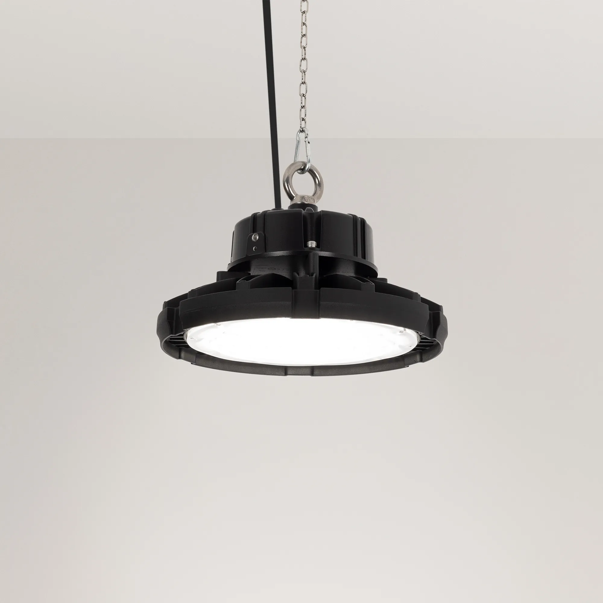 Поставка под заказ от 200 шт.Светильник для освещения складских и промышленных помещений. Мощность 150W, напряжение питания AC 220-240V/50Hz. CRI 80. Тип светодиодов SMD2835, с групповой оптической линзой. Цвет свечения ДНЕВНОЙ 5000K, световой поток 21000 Lm, угол рассеивания 120°. Цвет корпуса черный, линза из поликарбоната, степень влагозащиты IP65. Габариты Ф285xH193мм.