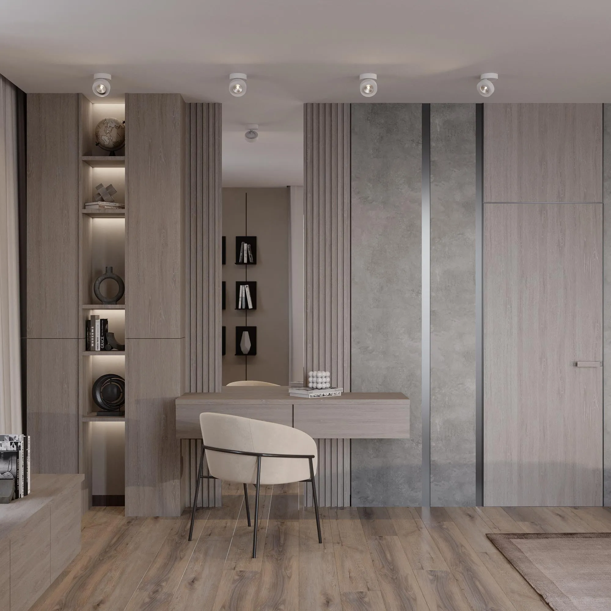 Накладной откидной поворотный светильник 12Вт. Цвет ДНЕВНОЙ 4000K, св.поток 800лм, CRI(Ra)>90, угол свечения 24°, угол поворота 355°, угол наклона 90°. Корпус круглый, белый алюминий, IP40. Размер DxH Ø100x71мм. Питание AC 220-240V, 12Вт, драйвер встроенный (DC 300mA, 28-42V).