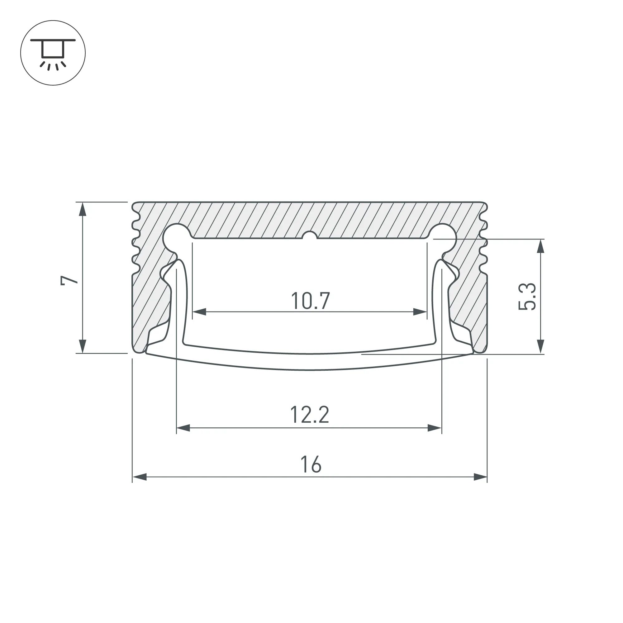 Алюминиевый профиль для светодиодных лент и линеек. Цвет - белый RAL9003 (порошковая окраска). Габаритные размеры (L×W×H): 2000x16x7 мм. Ширина площадки для ленты 10 мм. Экраны, заглушки и другие аксессуары приобретаются отдельно. Цена за 1 метр.