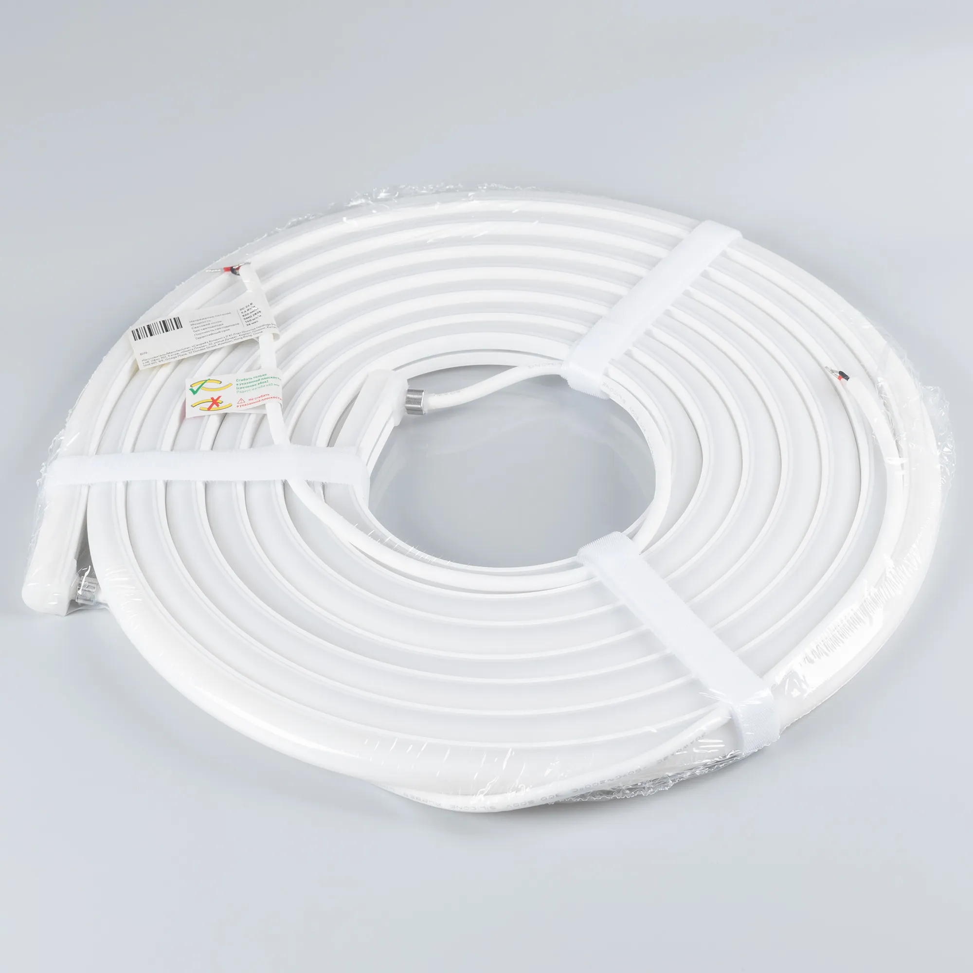 Гибкая герметичная лента (неон серии MOONLIGHT), сечение 16×15 мм. Светодиоды SMD 2835 140 шт/м. Цвет свечения ТЕПЛЫЙ БЕЛЫЙ (3500 К), индекс цветопередачи CRI>90, световой поток 820 лм/м, угол излучения 160°. Мощность 9.6 Вт/м, питание 24 В. Класс пылевлагозащиты IP65. Размеры 5000×16×15 мм. Мин. отрезок 50 мм. Вертикальный изгиб TOP, минимальный радиус изгиба 60 мм, вывод кабеля вниз. Катушка 5 м. Цена за 1 м. Гарантия 3 года.