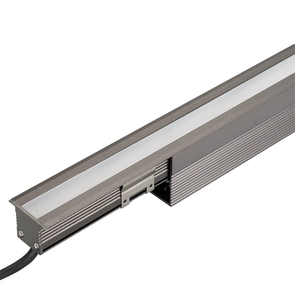 Встраиваемый светодиодный светильник для грунта и пола с монтажной чашей. Мощность 24 Вт, световой поток 1050 лм, цвет ДНЕВНОЙ 4000К. CRI(Ra)>80, угол 120°. Прямоугольный влагозащищенный корпус IP67, серебристый алюминий. Экран PMMA. Выдерживает нагрузку 300 кг. Питание DC24V, 24 Вт. Размер ДxШxВ 1000x38x51 мм. Установка в отверстие ДxШxВ 1000x33.2x51 мм. Допускается регулирование светового потока ШИМ.