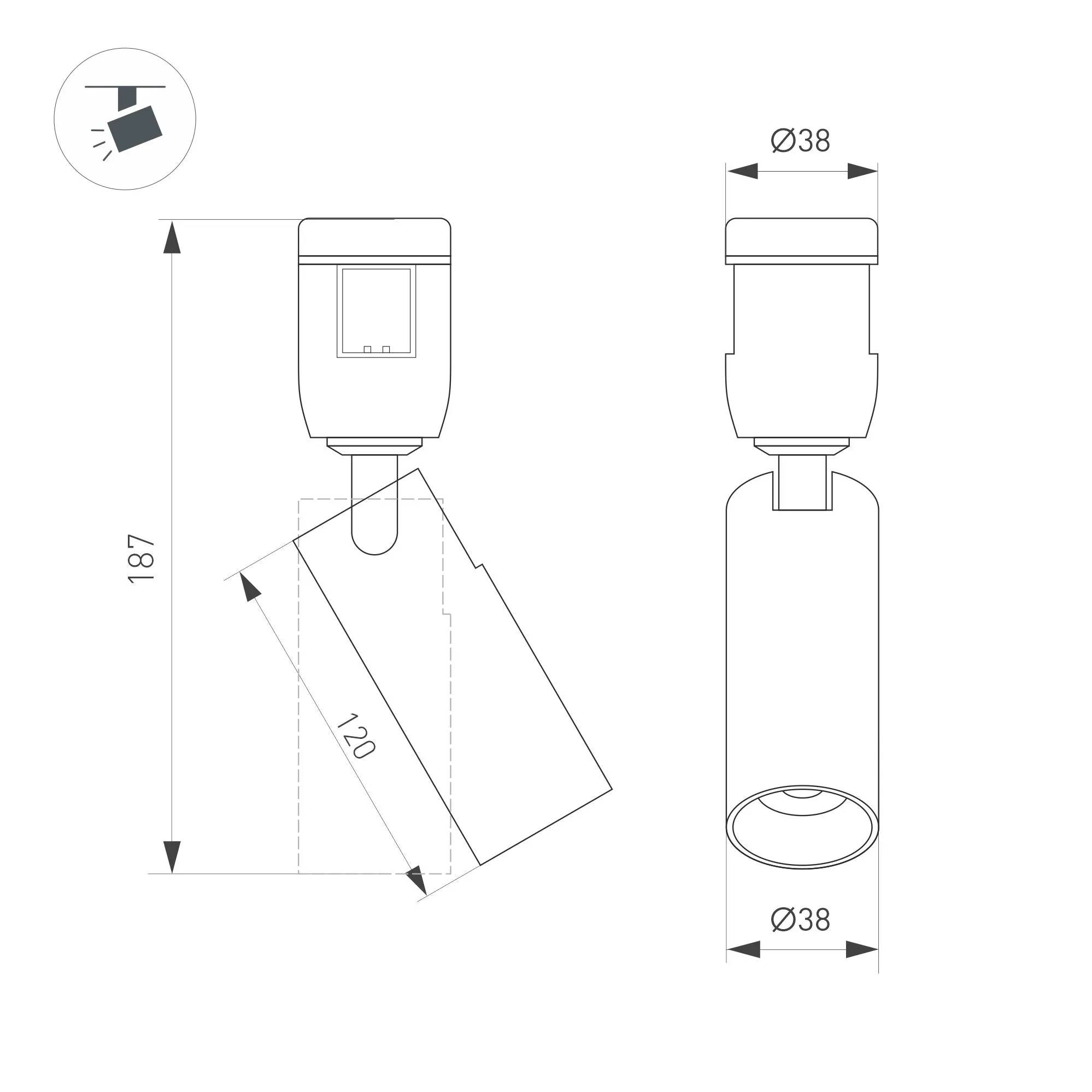 Светильник поворотный для треков APRIORI шириной 17 мм. Мощность 8 Вт, св. поток 580 лм, 73 лм/Вт, теплый 3000 K, CRI>92, угол 36°, напряжение питания 48 В. Фигурный корпус из алюминия, анодированного в цвет светлое золото, степень защиты IP20. Размер: Ø38 x 187 мм. Монтаж на трек APRIORI 17 мм. Пульсация <1%. Возможно диммирование по ШИМ (PWM) или не адресное управление при использовании диммируемого драйвера Dali, 0-10V, TRIAC.