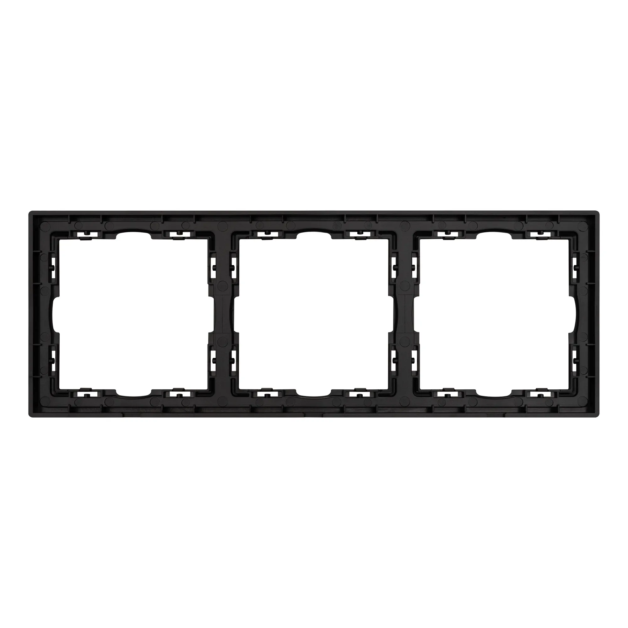 Рамка пластиковая на 3 поста, под встраиваемый механизм. Цвет - черный оникс, с Soft-Touch покрытием. Среднего уровня герметичности IP20. Ориентация монтажа горизонтальная.