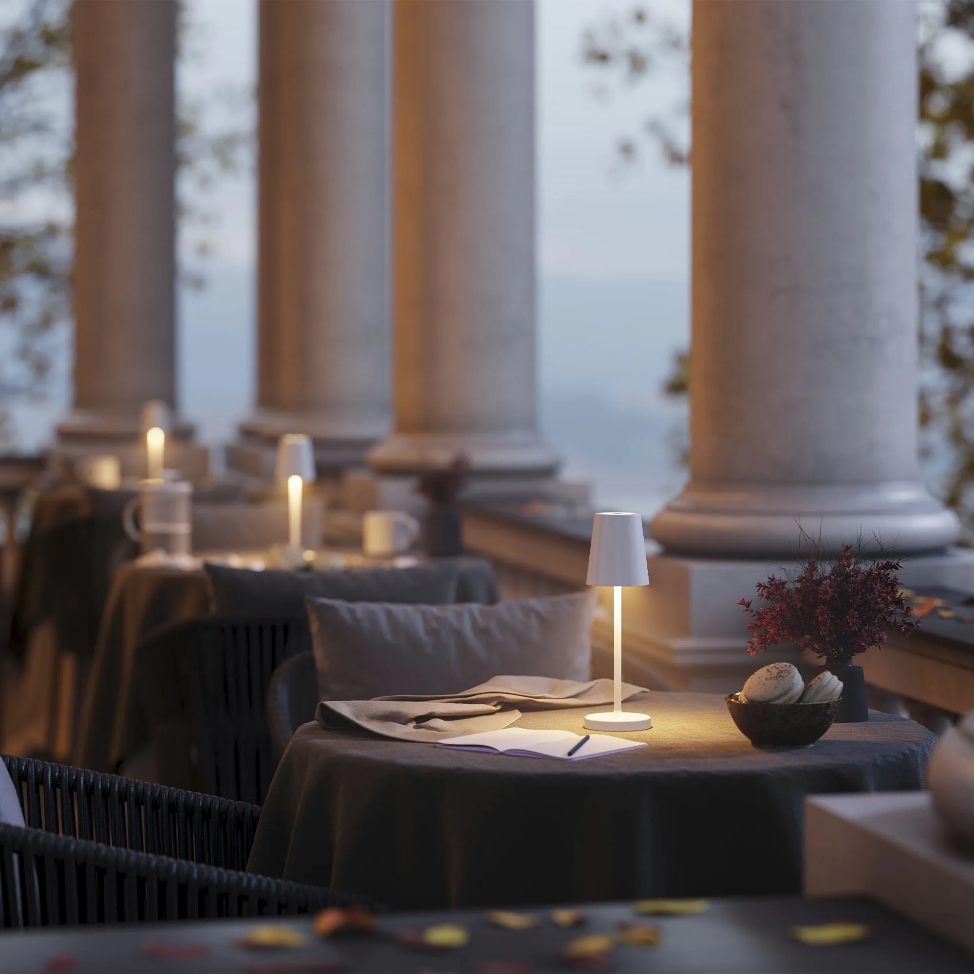 Настольный светильник со встроенным аккумулятором 1.5Вт, алюминиевый корпус, цвет песочный. Цвет ТЕПЛЫЙ БЕЛЫЙ 2200-2700-3000K, св.поток 110-130 лм, CRI(Ra)>80, угол 90°. Размер Ф75x250мм. IP54. Зарядка от сети переменного тока AC220-240V. Тип встроенного аккумулятора 1500мАч Li-ion, напряжение батареи 3.7V