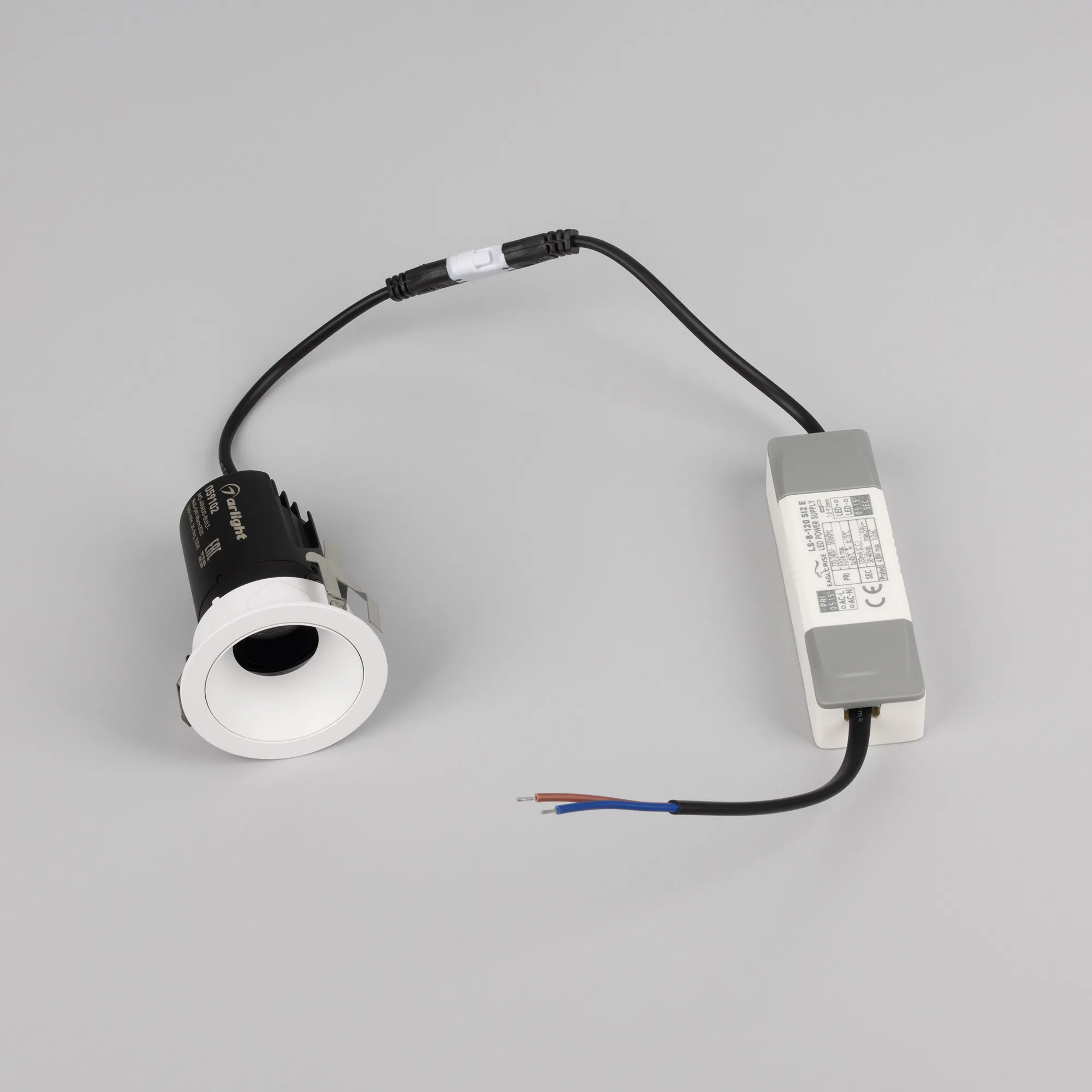 Встраиваемый светильник даунлайт. Мощность 5 Вт, св. поток 280 лм, 56 лм/Вт, теплый 3000 K, CRI>92, угол 36°, напряжение питания 230 В. Белый круглый корпус из алюминия, белый матовый отражатель, степень защиты IP20 . Размер: диаметр 52 мм, высота 66 мм. Монтаж встраиваемый, установочное отверстие: диаметр 45 мм. Драйвер, 27-40 В, 120 мА, пульсация <1%.